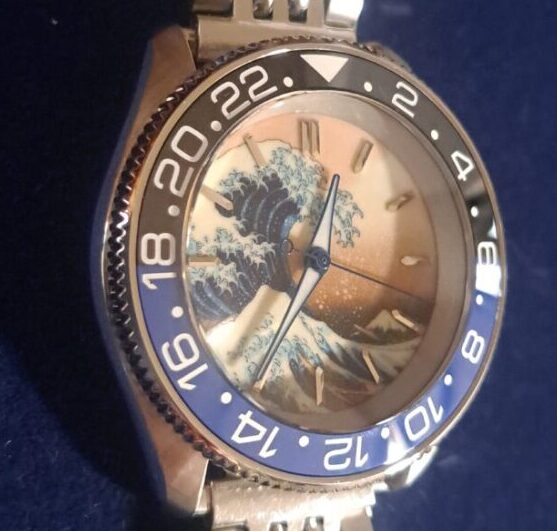 Dial Hand Bezel etc. custom remake 神奈川沖浪裏 JPosted on 2025-11-27 過去に製作したもののベゼルと風防の収まりが気に入らなかったので 風防、ベゼルとDLW製に交換しました。 ダブルドームの風防とSLOPEベゼルの具合が気に入ってます。