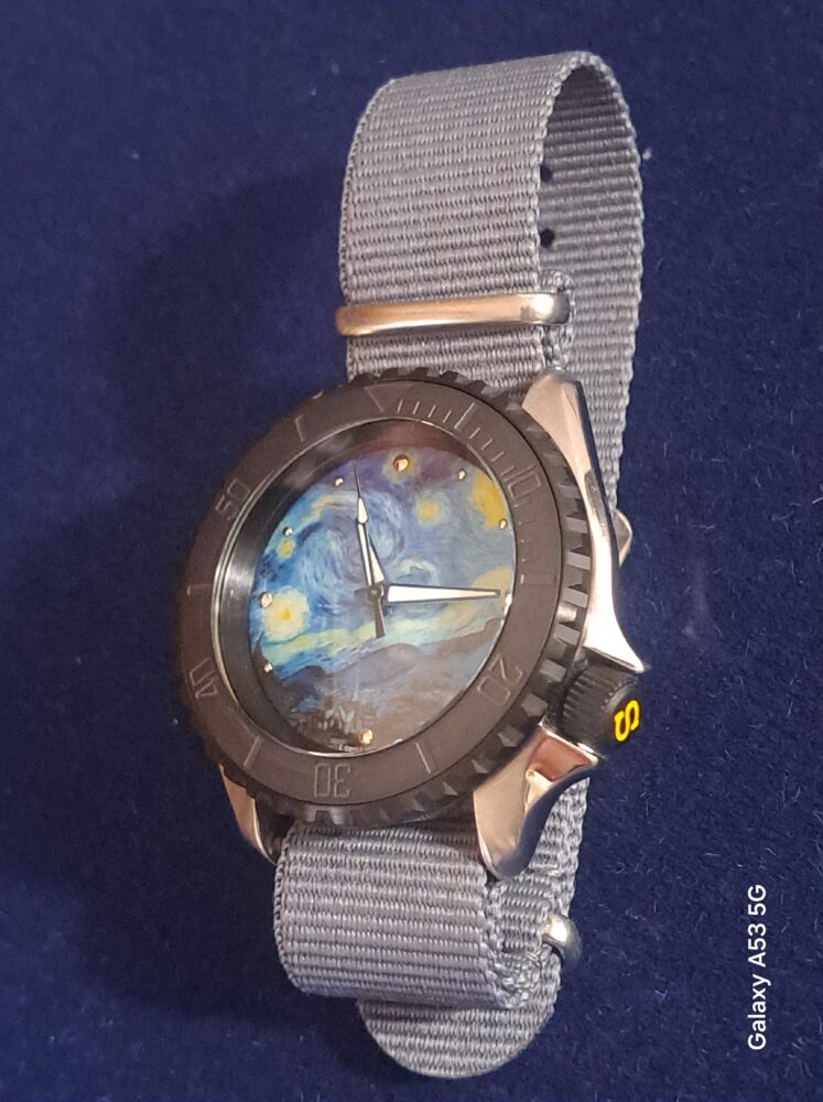 星月夜 JPosted on 2025-11-27 Dial Hand Bezel etc. custom No Comments 過去に購入してあった Lucius Atelier のDials(星月夜)をやっと制作。 チャプターリング、ベゼル、ベゼルインサート、Crown、風防、針は DLW製を使ってます。 黒の背景を意識してDialを引き立てるつもりでパーツを選んで降ります。 店長、今回もありがとうございました。